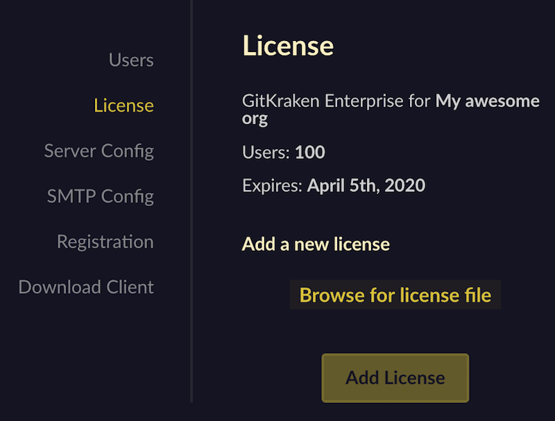 To update your GitKraken Self-Hosted license: