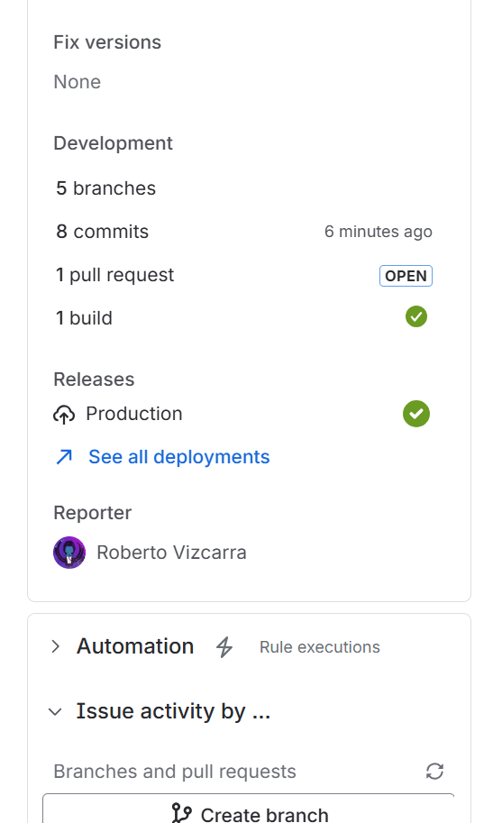 A build automatically links to a Jira issue when one of the build’s commits includes the Jira issue key in its commit message. A deployment to an environment (such as production or testing) links to an issue when a commit associated with the deployment contains the Jira issue key in its commit message.