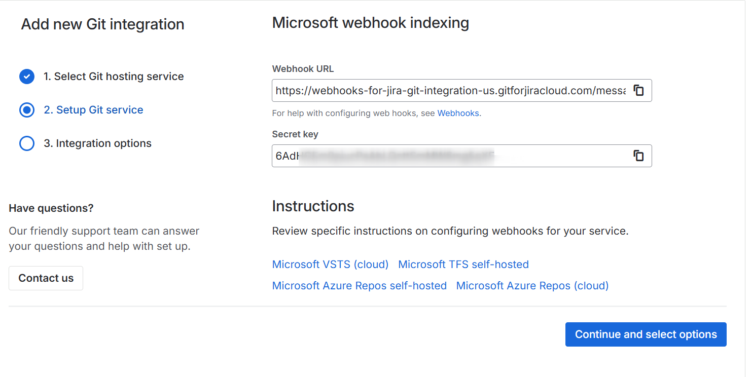 Connect Azure Repos, Azure DevOps, Azure DevOps Server, VSTS or TFS using the Webhook Indexing integration type to Jira Cloud